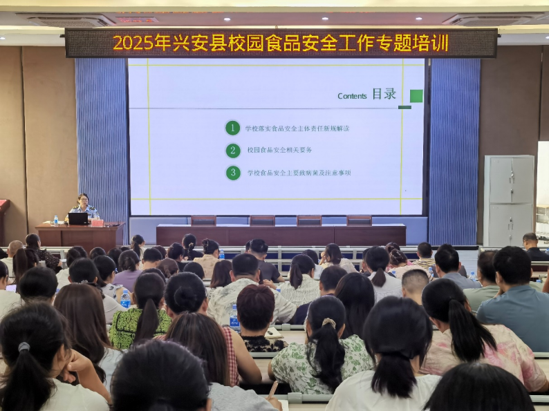 8月26日上午,广西壮族自治区桂林市兴安县市场监管局正在兴安中学逸夫楼会议室组织召开全县学校(含长儿园)食物平安专题培训会。长儿园的担任人、食物平安总监、食物平安员共计260余人加入培训。